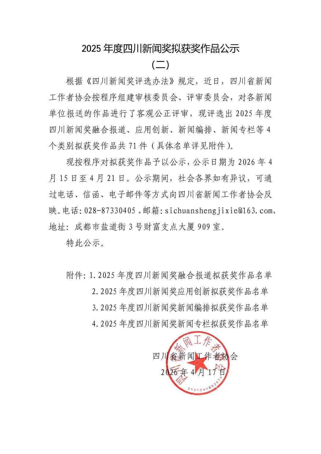 扫码查看【附件3】2025年度四川新闻奖新闻编排拟获奖作品名单